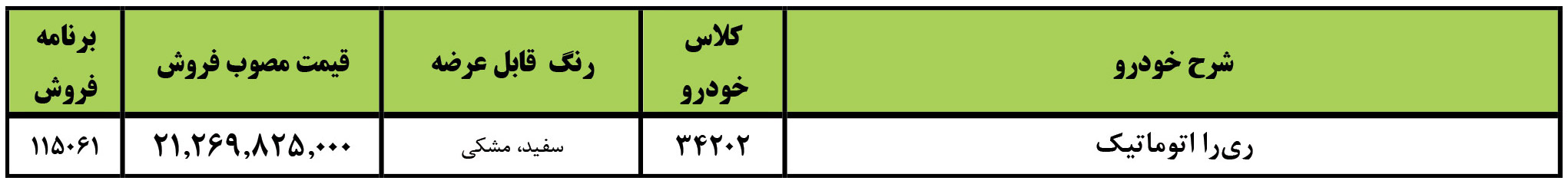 فروش فوری ریرا بدون قرعه کشی: بهمن 1404