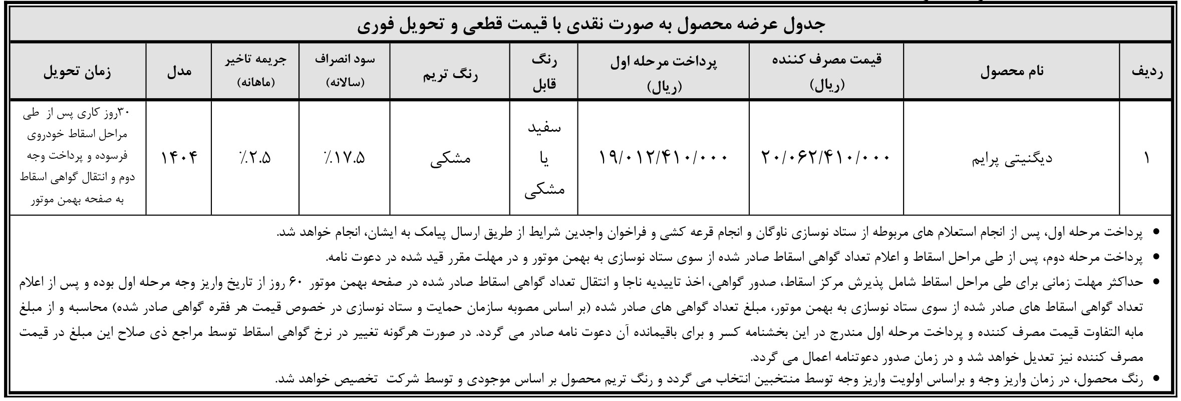 - شرایط فروش بهمن موتور