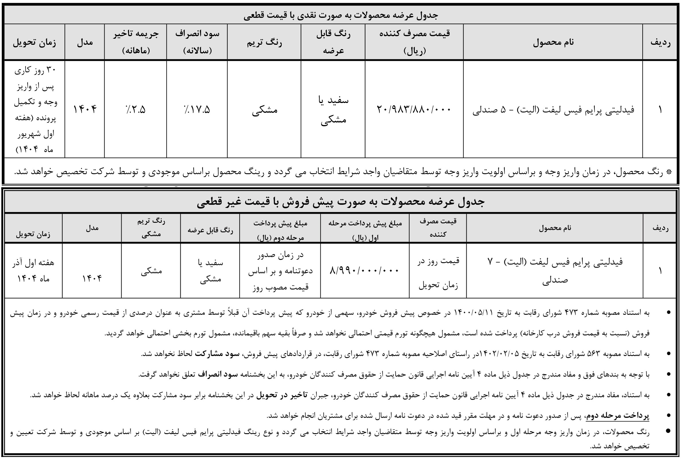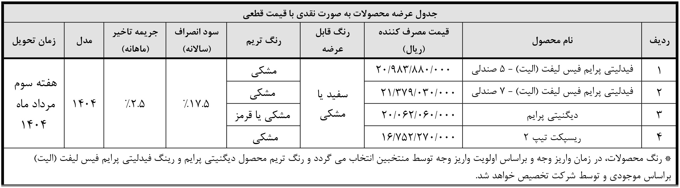 ثبت نام فیدلیتی الیت، ویژه متقاضیان طرح عادی، طرح جوانی و طرح فرسوده، از روز شنبه مورخ 1404/03/10 آغاز شده و تا پایان روز سهشنبه مورخ 1404/03/13 نیز ادامه خواهد داشت: