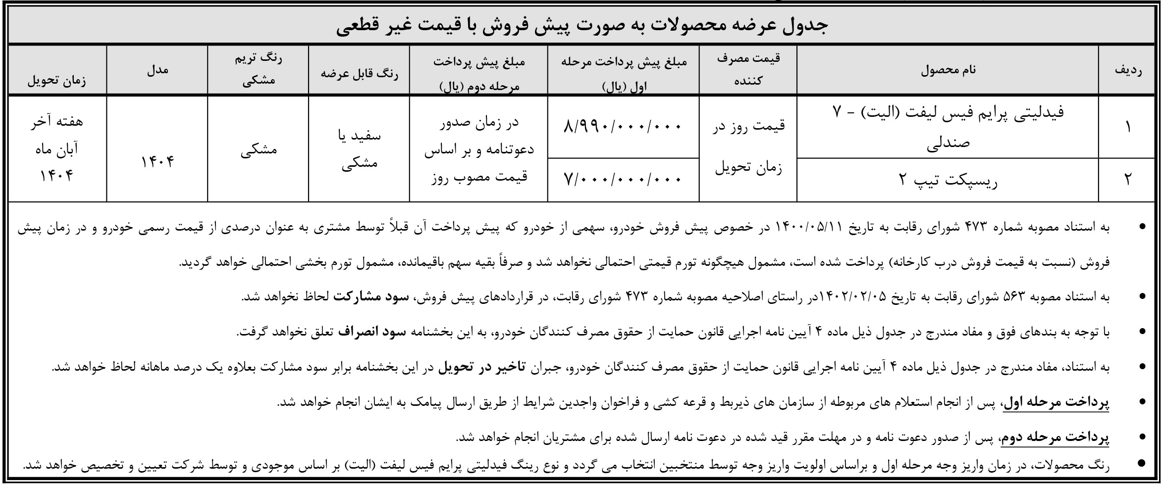 براساس بخشنامه فروش فیدلیتی، علاوه بر متقاضیان طرح فروش عادی، سایر مشتریانی که در طرح جوانی و در طرح فرسوده شرکت کردهاند نیز امکان واریز وجه را خواهند داشت.