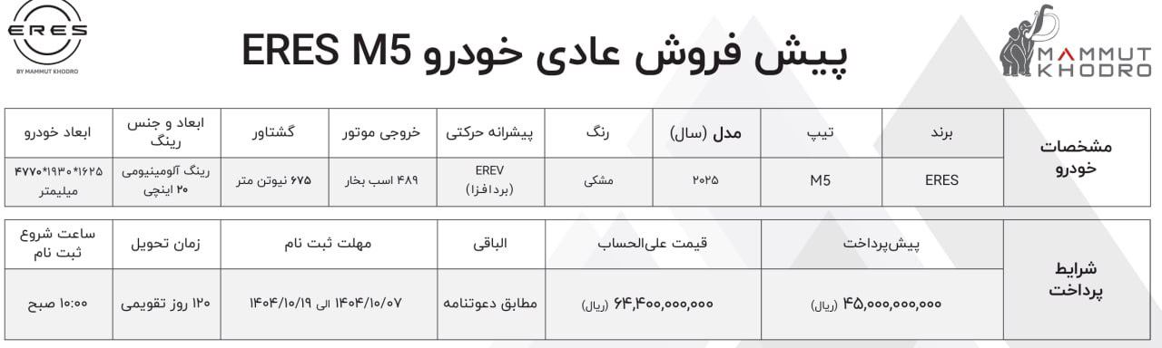 پیش فروش محصولات ماموت خودرو: مهر 1404